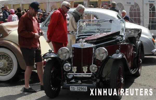 8月29日,在瑞士苏黎世以东80公里的莫里斯镇,人们参观老爷车。
