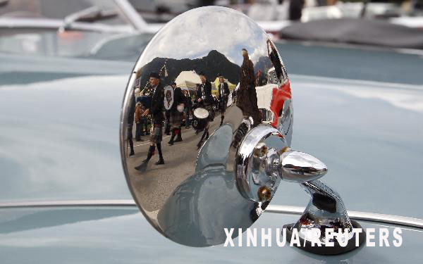 8月29日,在瑞士苏黎世以东80公里的莫里斯镇,一辆劳斯莱斯老爷车的车主开着自己的爱车参加老爷车集会。